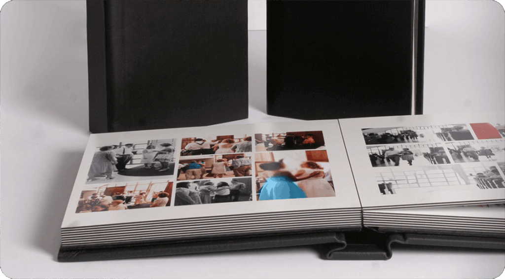 Every book comes packaged in a black presentation box, ready for client delivery within just 3-4 business days. Available in multiple sizes and page counts.